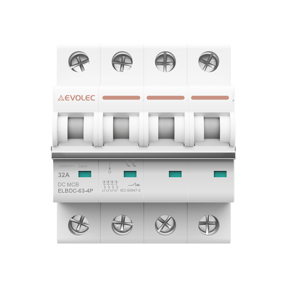 The rated operating voltage can reach DC12OOV, and the rated operating current can reach 63A, which is used for isolation, overload, and short circuit protection. It is widely used in photovoltaic, industrial, civil, communication, and other systems, and can also be used in DC systems to ensure the reliable operation of DC systems.Pole: 4PFrame grade: 63Rated working voltage VDC: 4P 1200VDCRated current ln(A): 1,2,3,4,6,10,16,20,25,32,40,50,63Rated insulation voltage Ui (V DC): 1200Rated impulse voltage Uimp (KV): 4Ultimate breaking capacity lcu (KA) (T =4ms): 6Operation breaking capacity lcs (KA): lcs=100%IcuTripping type: Thermal-magneticCurve Type: CMechanical life: 20000 times.Electrical life: 2500 times.Polarity: HeteropolarWorking temperature: -20 C to +70 CAltitude(m): 2000mPollution degree: Level 3Protection degree: IP20Installation environment: Places without significant vibration and impactInstallation method: DIN35 standard railWiring capacity: 2.5-25mm2Terminal torque: 3.5 N·mProduct size(mm) : 4P:75.5*72*80Standard: IEC/EN 60947-2, EU ROHS environmental protection requirements.Quality Certificates: CE, ISO 9001, RoHS